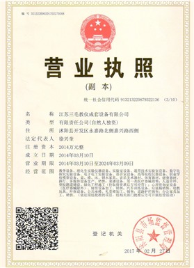 江蘇三毛教儀成套設(shè)備有限公司是一家集設(shè)計、生產(chǎn)、銷售、售后為一體的大型制造企業(yè)。坐落于風(fēng)景秀麗的花木之鄉(xiāng)、全國經(jīng)濟百強縣、國家級經(jīng)濟開發(fā)區(qū)沭陽縣永嘉路。